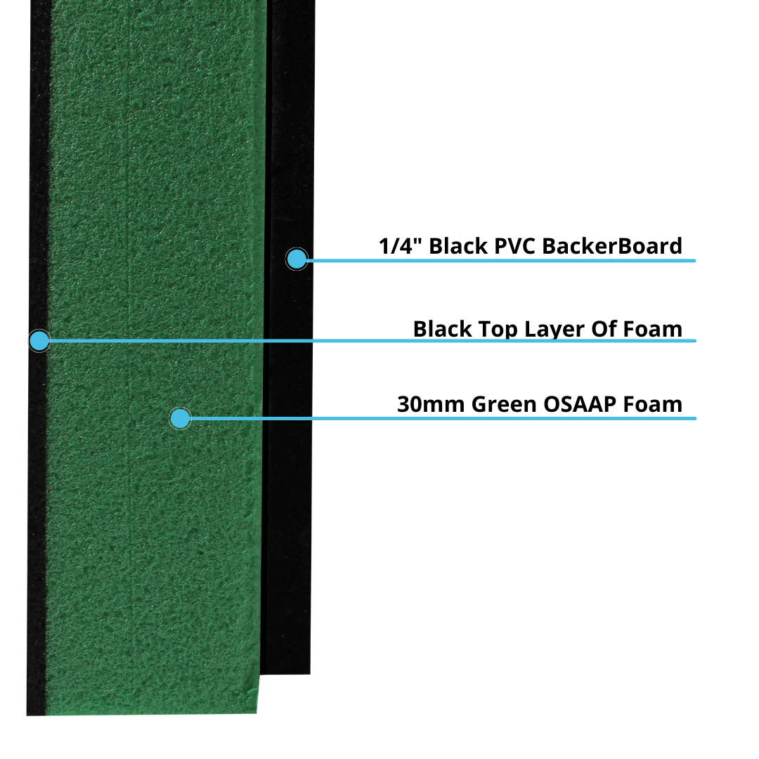 We use black PCV for our backer boards because, like the foam, it is not affected by moisture and can be easily cleaned. The standard backer board is Black PVC and is 1/4″ in depth.